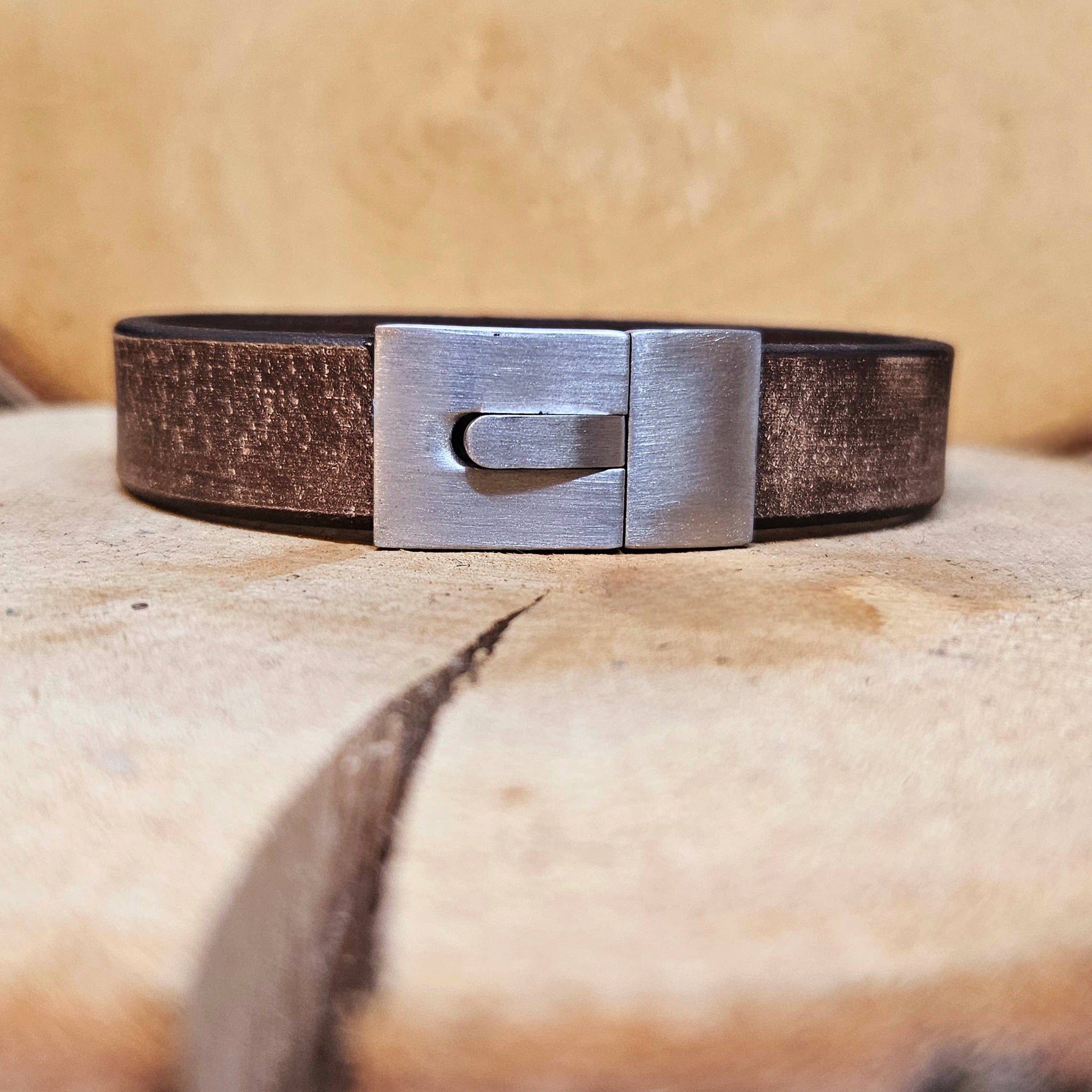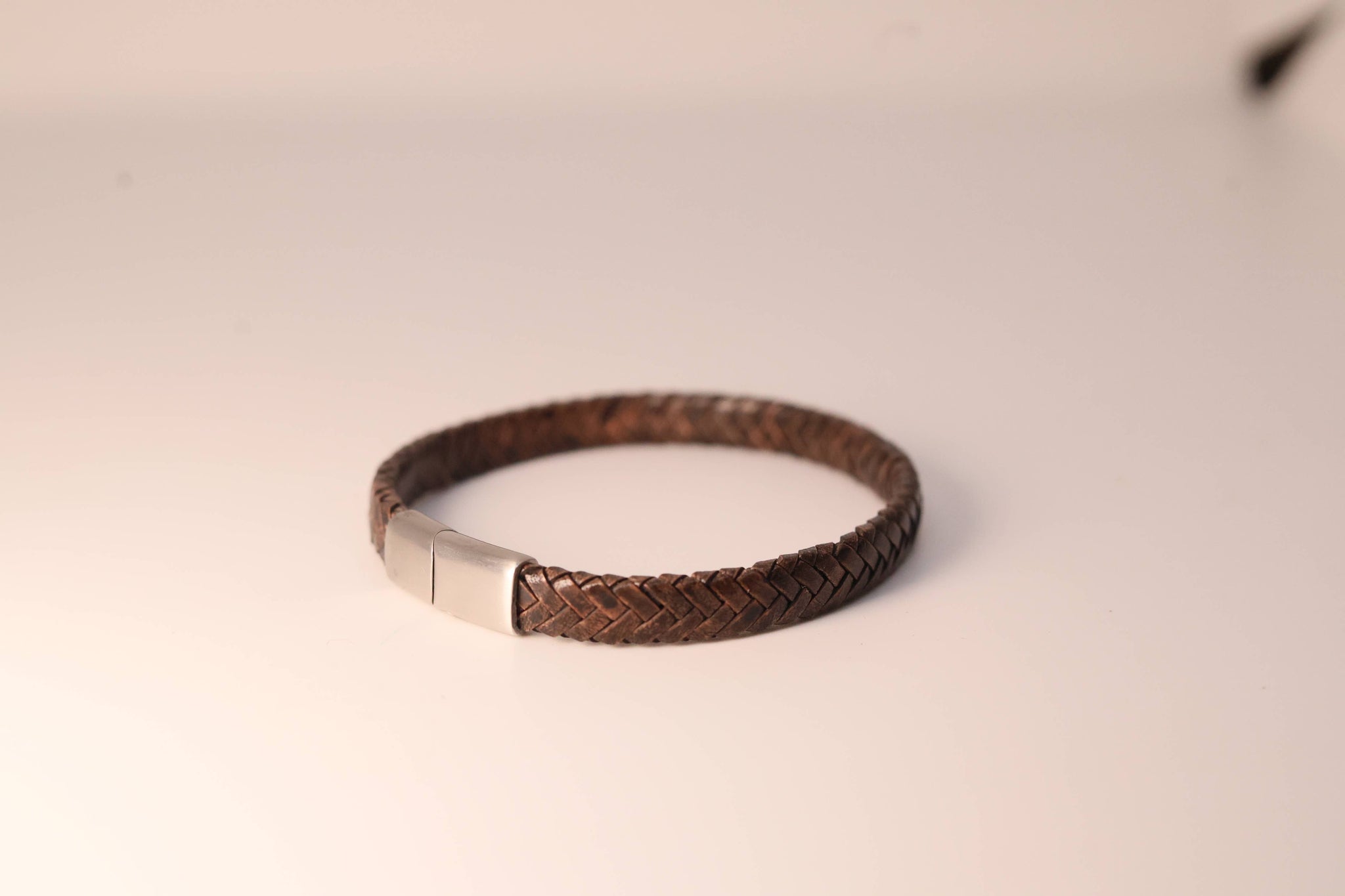 Men's Leather Bracelet. Handmade Leather (aged brown in color) soft with stainless steel clasps designed specially for men. Medium: 19cm