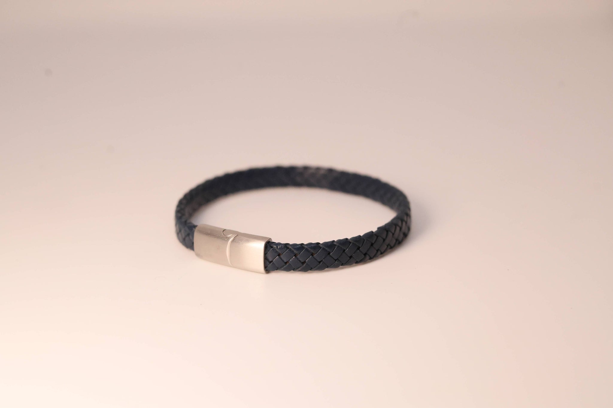 Braided Leather Bracelet with a steel silver shade lock. Suitable for any occasion or given as a gift for the holidays, this bracelet is a perfect product for everyday menswear.